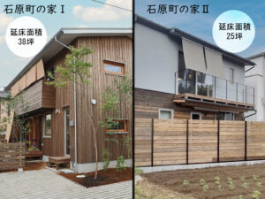 石原町の家Ⅰ:2階建126.22㎡(38.16坪)石原町の家Ⅱ:2階建82.90㎡(25.02坪)